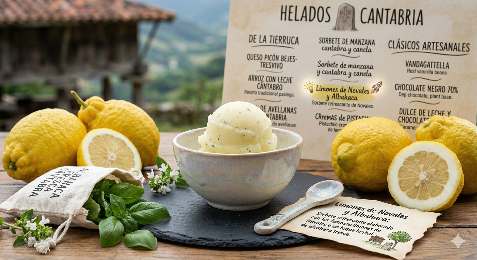 Sorbete refrescante elaborado con los famosos limones de Novales y un toque herbal de albahaca fresca