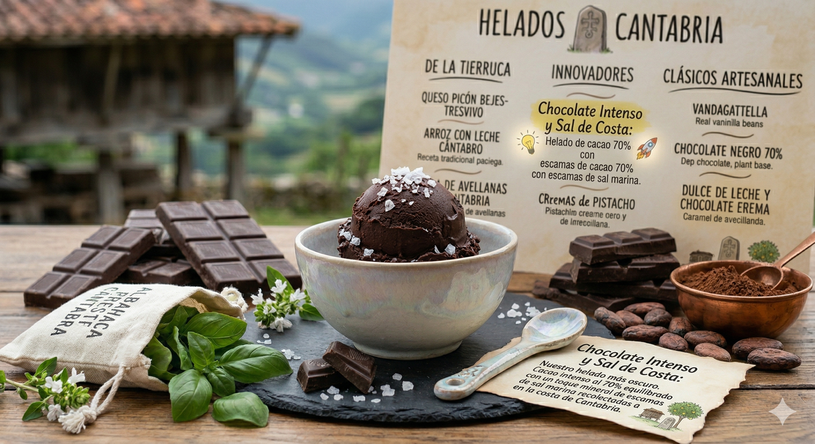 Helado de base cremosa infusionado con auténtico sobao pasiego de los Valles Pasiegos, con tiernos tropezones caramelizados.